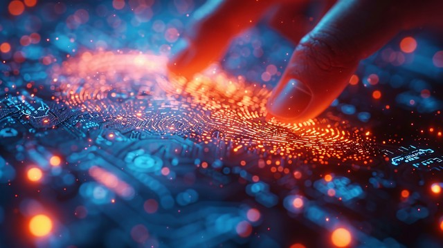技术生物识别指纹扫描仪的未来数字处理,数字程序监控和安全扫描的概念