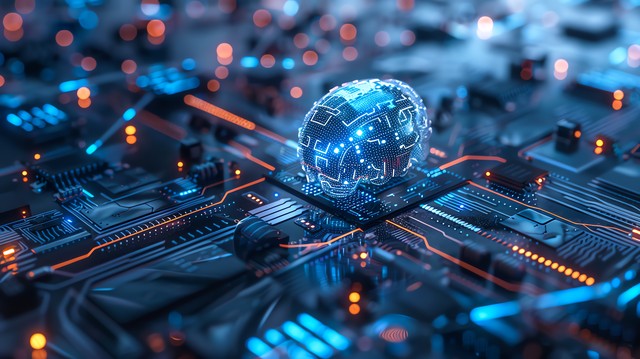 电路板上的数字大脑,代表人工智能技术融合和演进。futuristich演。