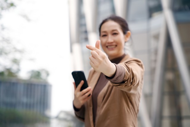 自信的职业女性竖起大拇指