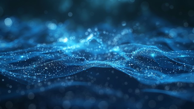 抽象的蓝色数字背景,具有发光的网络连接和黑暗背景下的数据流波,未来技术概念。