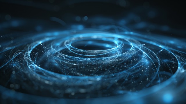 抽象的蓝色数字背景,具有发光的网络连接和黑暗背景下的数据流波,未来技术概念。