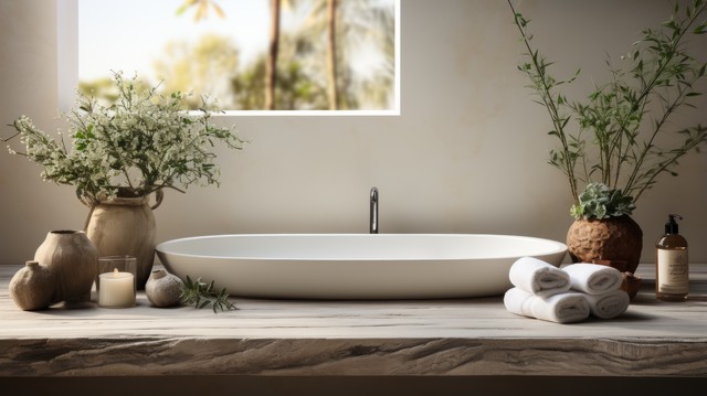 卫浴空间采用自然元素打造宁静舒适的氛围