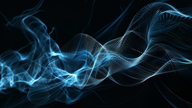 抽象的未来派蓝色发光粒子背景与散景灯和波浪元素,采用 AI 数字技术概念的风格。