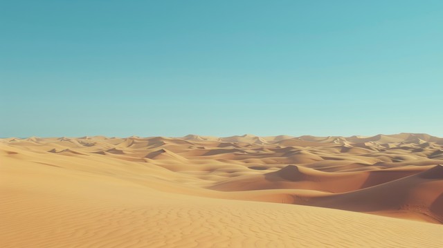 沙漠沙丘的广角镜头、广阔晴朗的天空