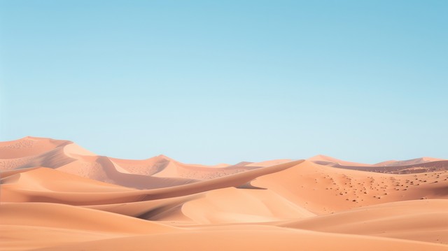 沙漠沙丘的广角镜头、广阔晴朗的天空