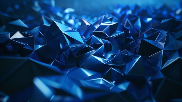 抽象未来派-深蓝色背景上具有多边形形状的技术。 设计数字技术概念。