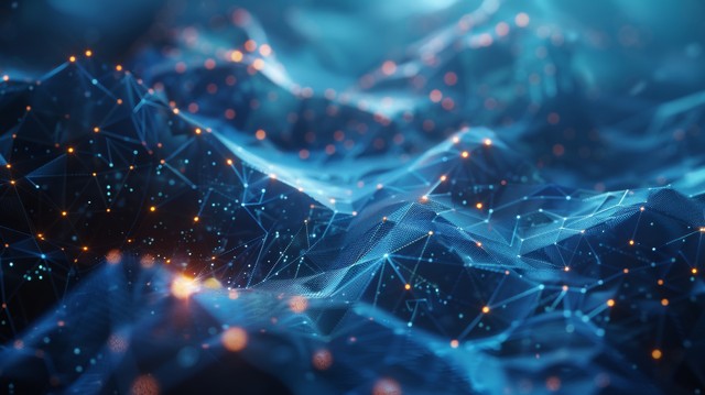 抽象未来派-深蓝色背景上具有多边形形状的技术。 设计数字技术概念。