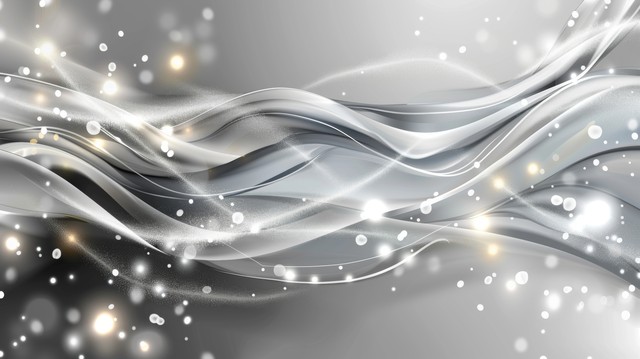 银灰色和黑色背景,具有平滑的线条、波浪和发光点
