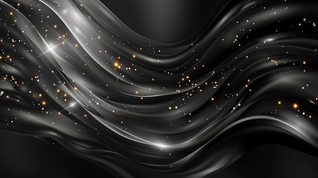 银灰色和黑色背景,具有平滑的线条、波浪和发光点