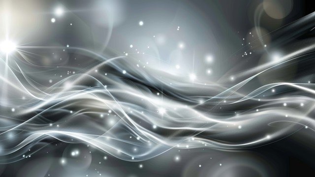 银灰色和黑色背景,具有平滑的线条、波浪和发光点