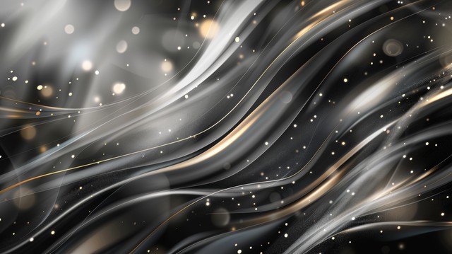 银灰色和黑色背景,具有平滑的线条、波浪和发光点