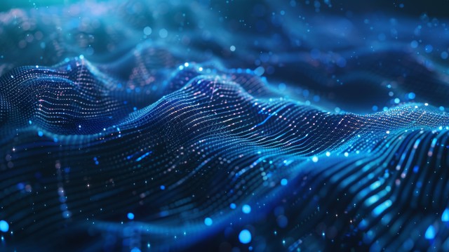 抽象未来派-深蓝色背景上具有多边形形状的技术。 设计数字技术概念。