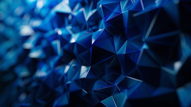 抽象未来派-深蓝色背景上具有多边形形状的技术。 设计数字技术概念。