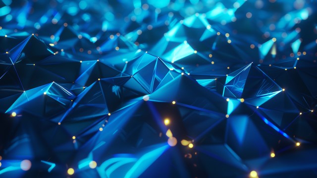 抽象未来派-深蓝色背景上具有多边形形状的技术。 设计数字技术概念。