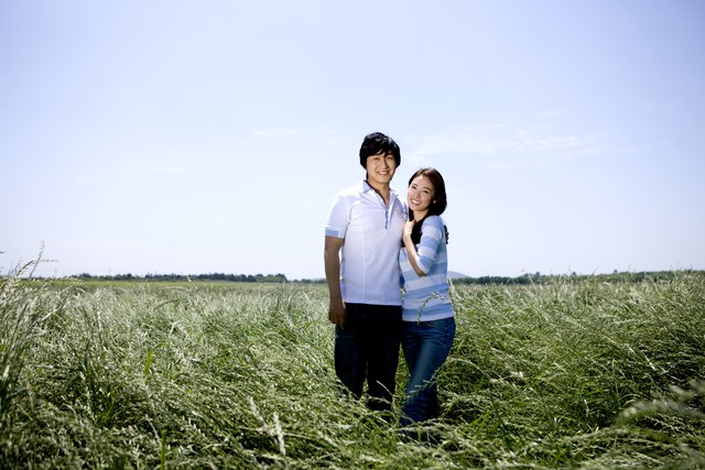一对夫妇站在球场上