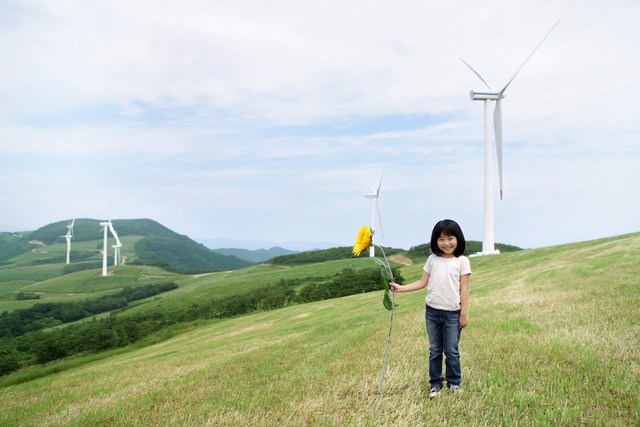 孩子在大自然中拿着向日葵