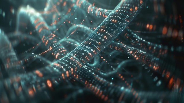人工智能DNA分子。 DNA 被转换成二进制代码。 概念二进制代码基因组。 抽象技术科学,概念人工D
