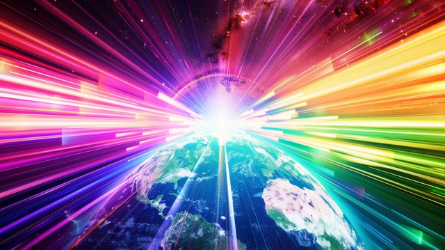 未来企业在数字空间 3D 渲染背景下投资世界网络技术,丰富多彩的全球与互联网和技术概念