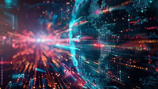 未来企业在数字空间 3D 渲染背景下投资世界网络技术,丰富多彩的全球与互联网和技术概念