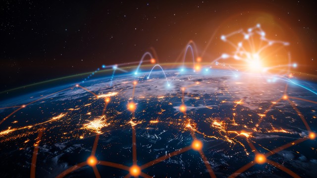 未来企业在数字空间 3D 渲染背景下投资世界网络技术,丰富多彩的全球与互联网和技术概念
