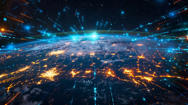 未来企业在数字空间 3D 渲染背景下投资世界网络技术,丰富多彩的全球与互联网和技术概念