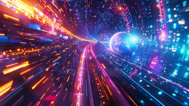 未来企业在数字空间 3D 渲染背景下投资世界网络技术,丰富多彩的全球与互联网和技术概念