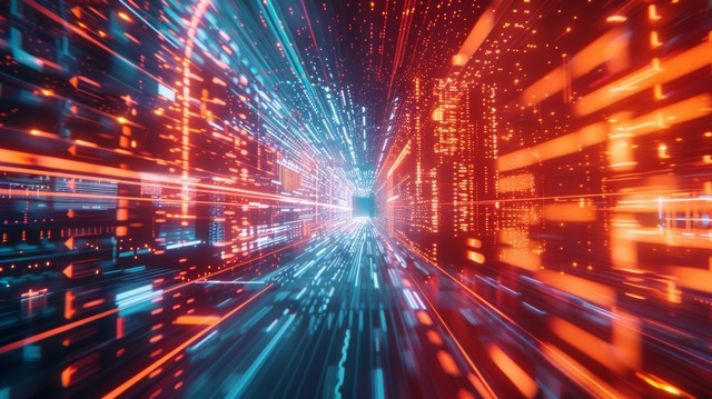 数据传输和未来技术网络安全概念背景抽象高速数字互联网。 运动模糊。 网络空间环境的抽象技术与3D渲染