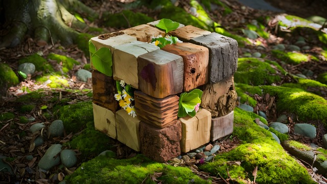 一张由自然元素混合而成的立体立方体的迷人照片。