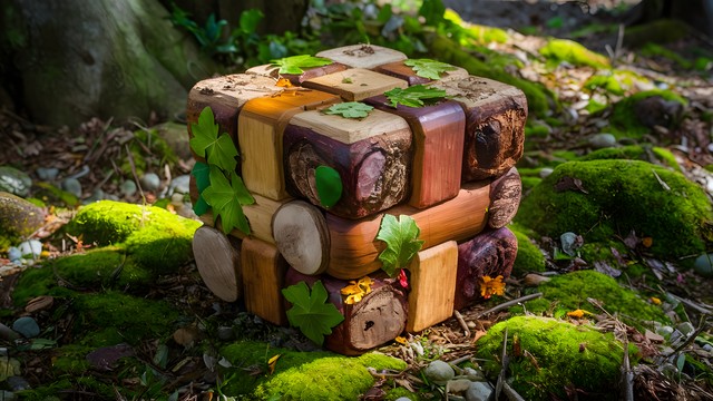 一张由自然元素混合而成的立体立方体的迷人照片。