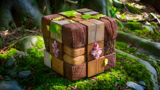 一张由自然元素混合而成的立体立方体的迷人照片。