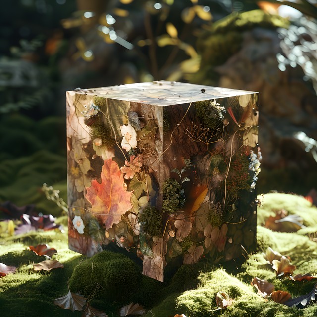 一张由自然元素混合而成的立体立方体的迷人照片。