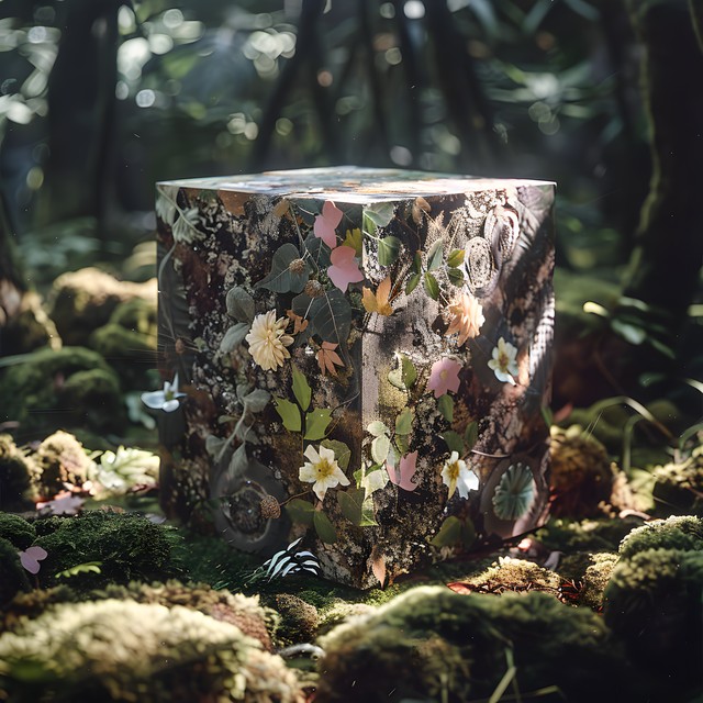 一张由自然元素混合而成的立体立方体的迷人照片。