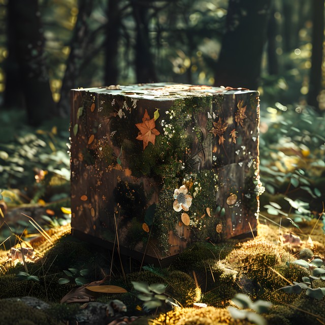 一张由自然元素混合而成的立体立方体的迷人照片。