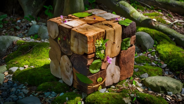一张由自然元素混合而成的立体立方体的迷人照片。