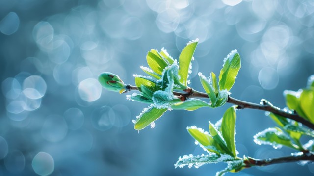 带有冰芽的枝条。自然背景