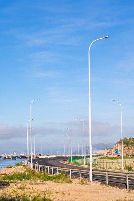 福建霞浦夏天东海海边海岛岛屿海岸线公路上的路灯自然风景