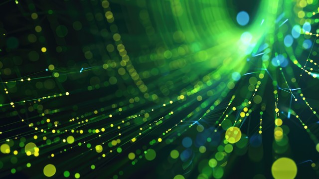 数字技术速度连接蓝绿色背景网络纳米信息抽象通信创新未来科技数据互联网网络连接Ai大数据线点图3d