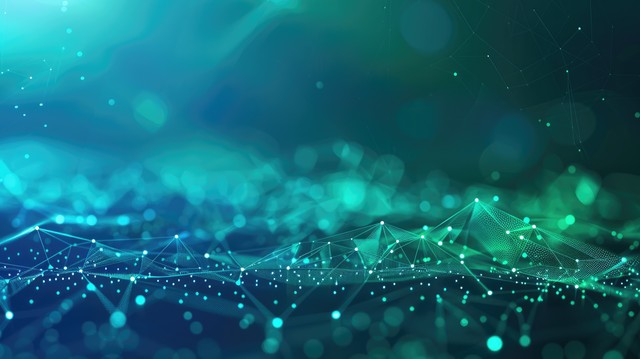 数字技术横幅绿色蓝色背景概念与技术光效抽象技术创新未来数据互联网网络 Ai 大数据线点连接插图矢量