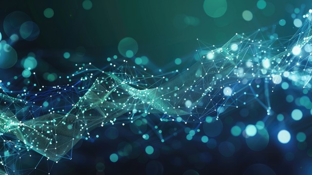 数字技术横幅绿色蓝色背景概念与技术光效抽象技术创新未来数据互联网网络 Ai 大数据线点连接插图矢量