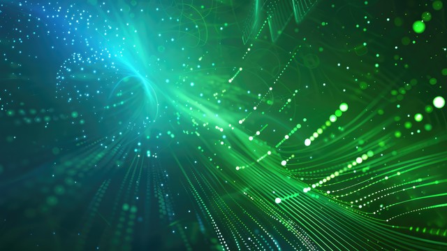 数字技术横幅绿色蓝色背景概念与技术光效抽象技术创新未来数据互联网网络 Ai 大数据线点连接插图矢量