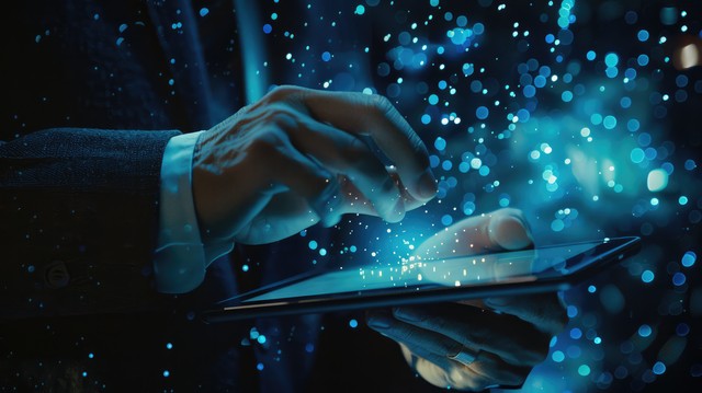 业务团队同事利用股票图表数据在笔记本电脑上规划和分析图表股票市场交易