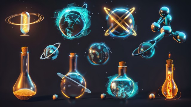 一套 3d 科学图标科学技术天文学物理化学生物学概念