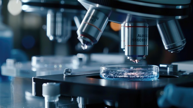 先进显微镜检查培养皿样品的未来实验室特写中的尖端显微分析