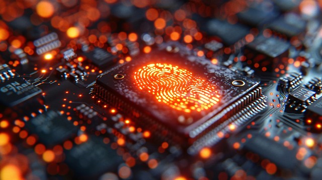 技术生物识别指纹扫描仪的未来数字处理,数字程序监控和安全扫描的概念