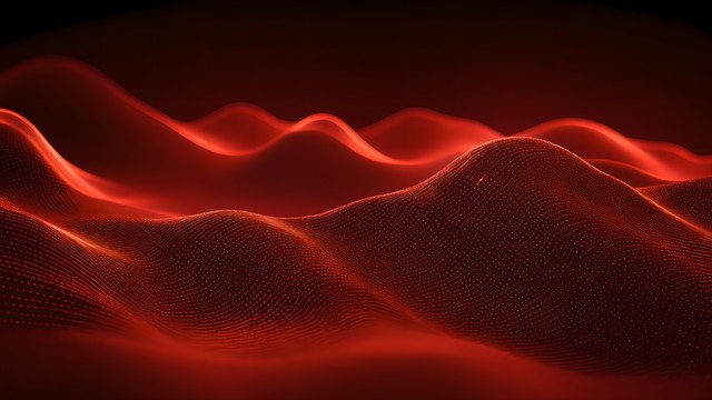 数字技术背景。发光点的动态波。彩色音乐波。演示设计的未来背景