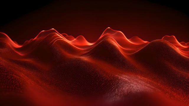 数字技术背景。发光点的动态波。彩色音乐波。演示设计的未来背景