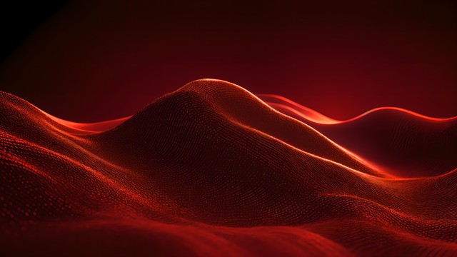 数字技术背景。发光点的动态波。彩色音乐波。演示设计的未来背景