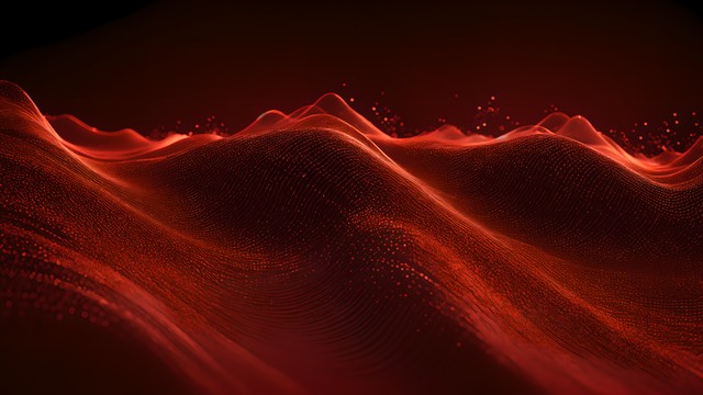 数字技术背景。发光点的动态波。彩色音乐波。演示设计的未来背景
