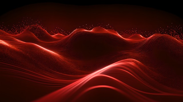 数字技术背景。发光点的动态波。彩色音乐波。演示设计的未来背景