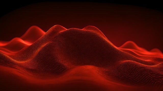 数字技术背景。发光点的动态波。彩色音乐波。演示设计的未来背景